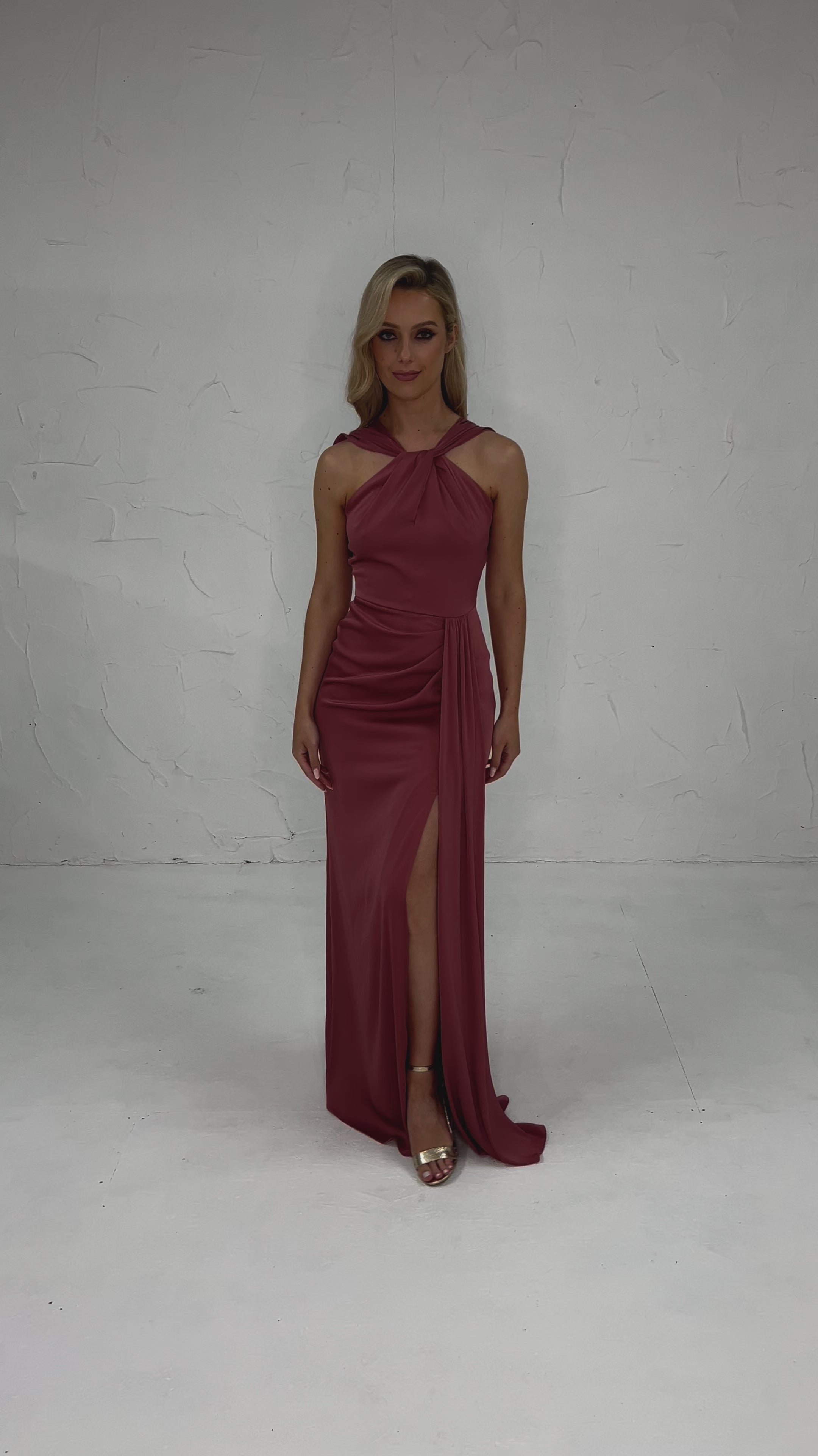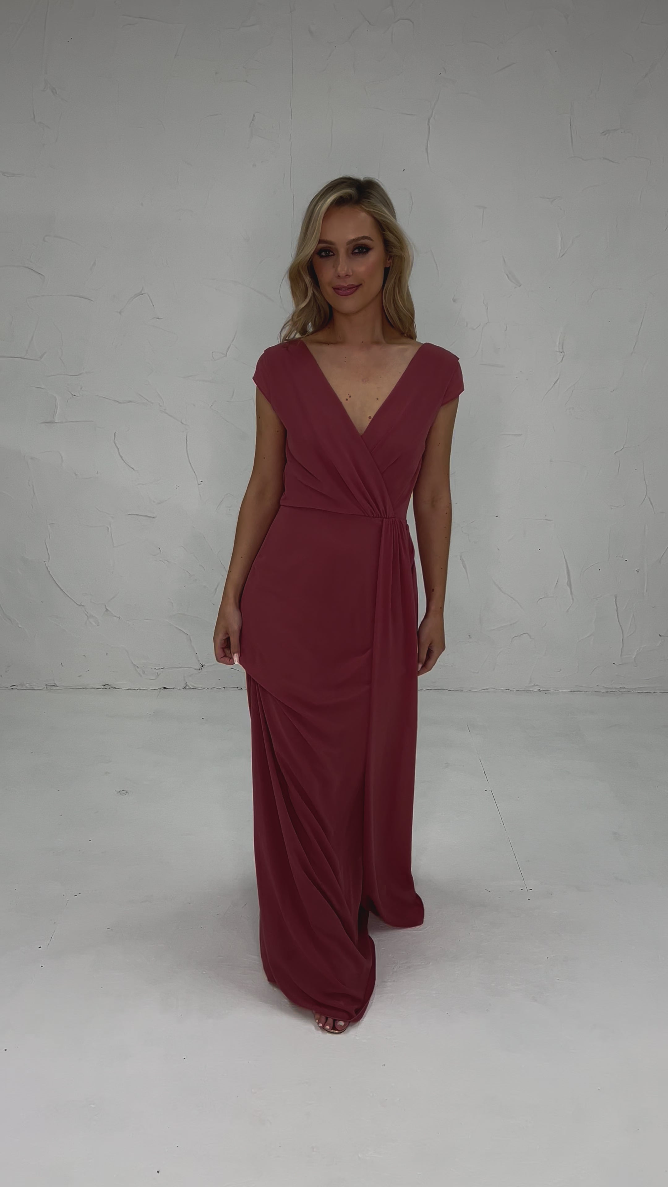 Fleur Satin Gown Detachable Bow - Marsala 0324