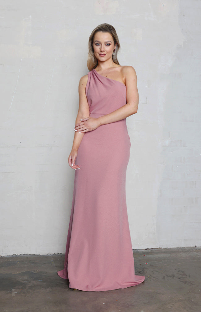 Fleur Crepe Gown Detachable Bow - Dusty Rose