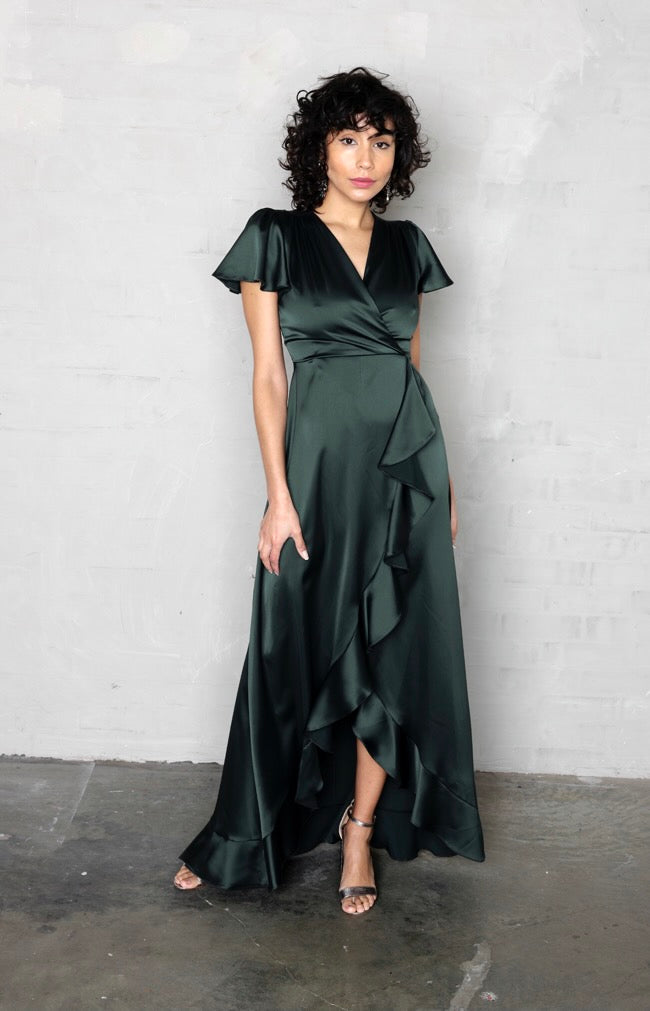 Fleur Satin Gown - Forest Green