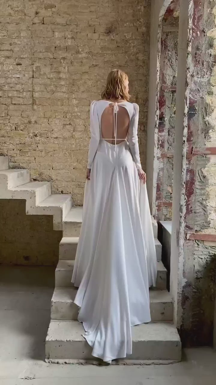 Abby is a detachable sleeve wedding dress, and you also have the choice of 3 sleeve options! Or choose to wear it as a slim strap wedding dress only!
