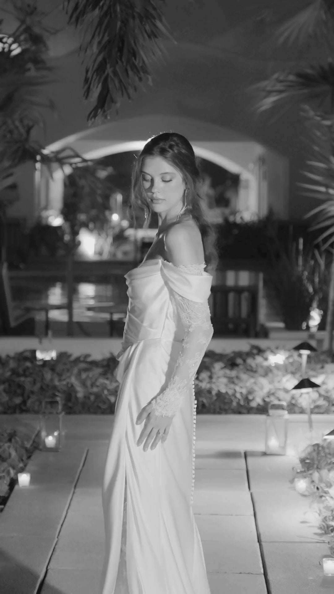 Harlow seamlessly marries modern sophistication with a captivating vintage-inspired twist. This satin wedding dress has the most beautiful details, like the full lace underskirt which peeks through that daring leg slit. If you love lace, but not all over, Harlow really gives you that unique & modern pop of lace! A basque waist wedding dress, Harlow is for the modern bride 🤩