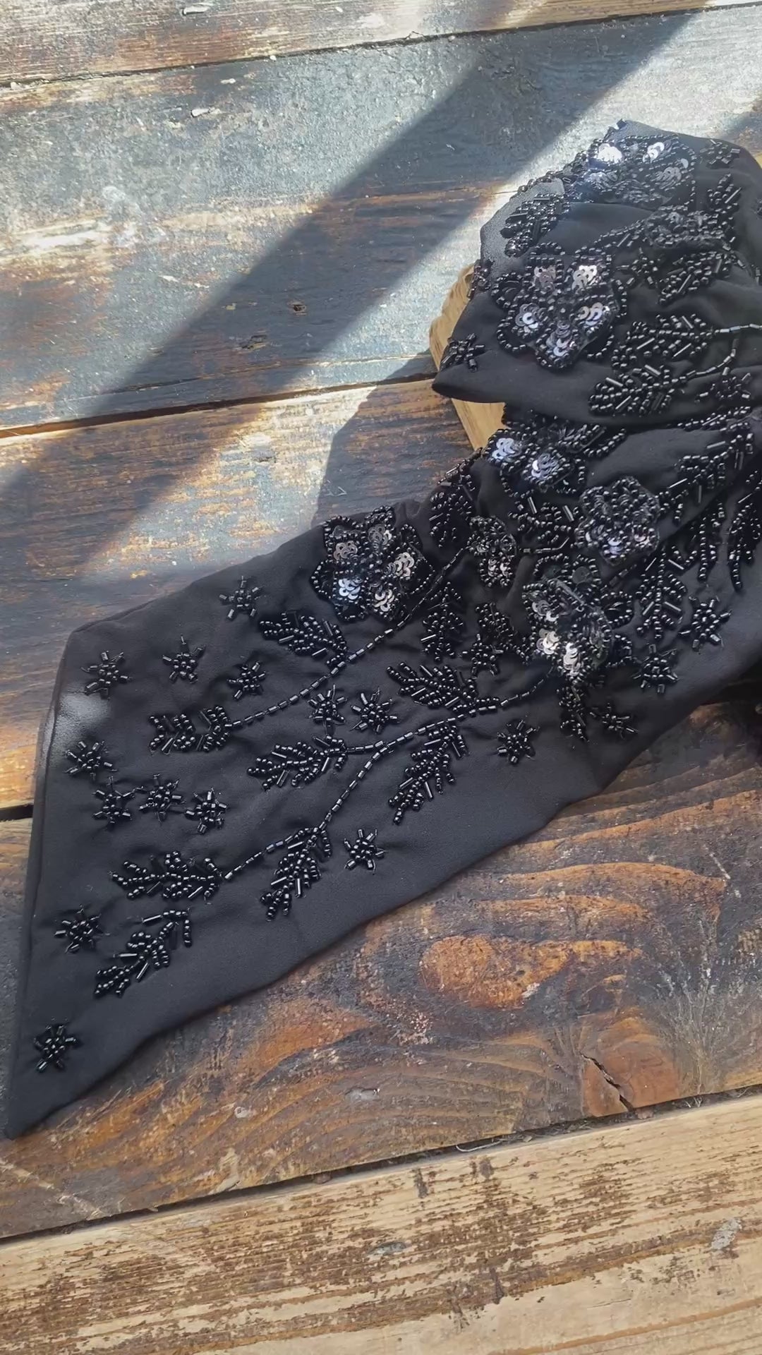 The Karina Bow in hand beaded black is a versatile accessory designed to complement the Folkster Fleur and Edwina dresses, adding refined detail and elegance to your ensemble. Just pop it on to any strap for extra gown detail, or to change up your gown or create an individual look for one of your mix and match bridesmaids.
