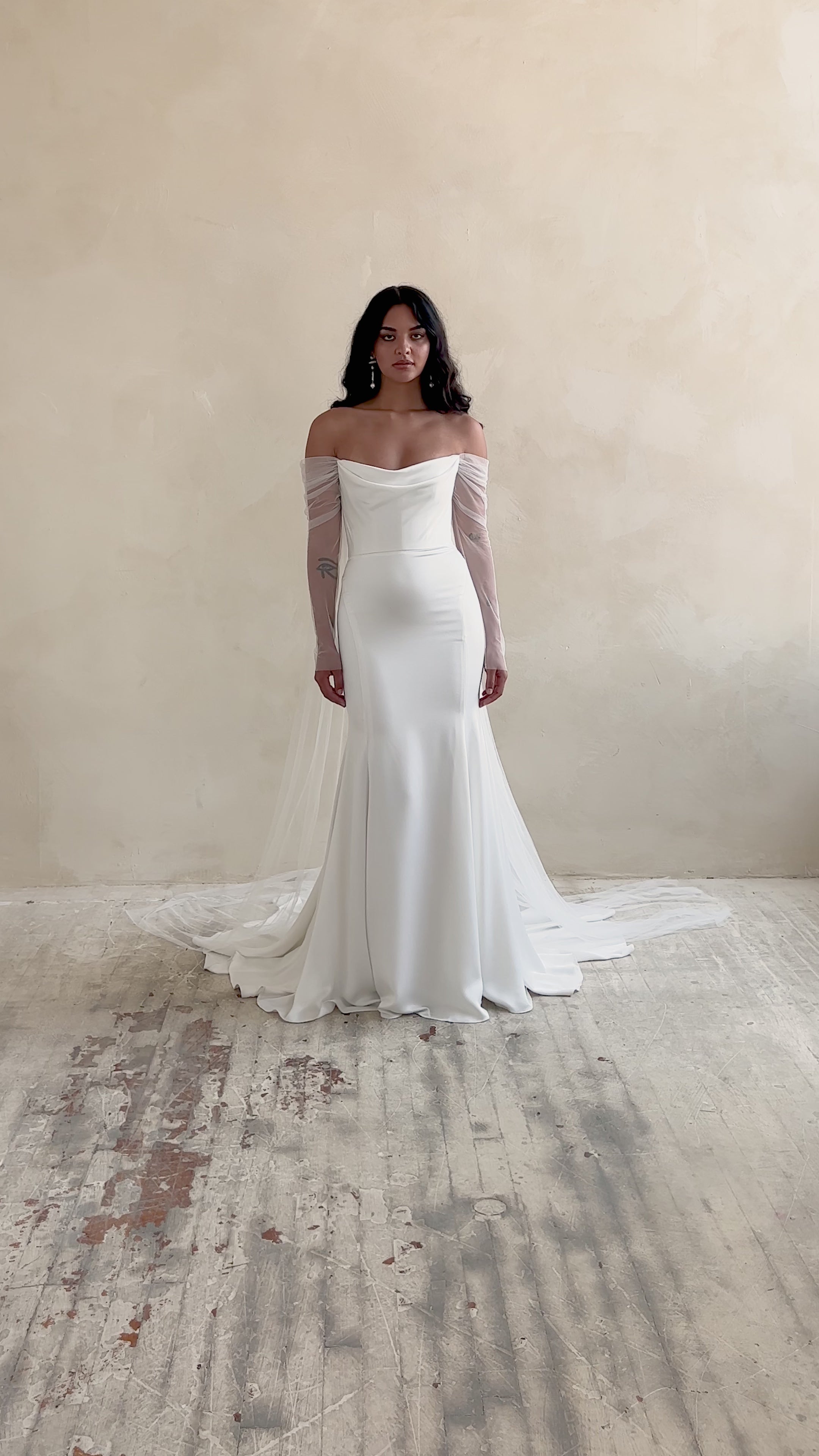 Olivia has it all: a timeless silhouette, lux satin fabric, that sheer detail and a fit that only boning can give ✔️ This gown will literally take your breath away!